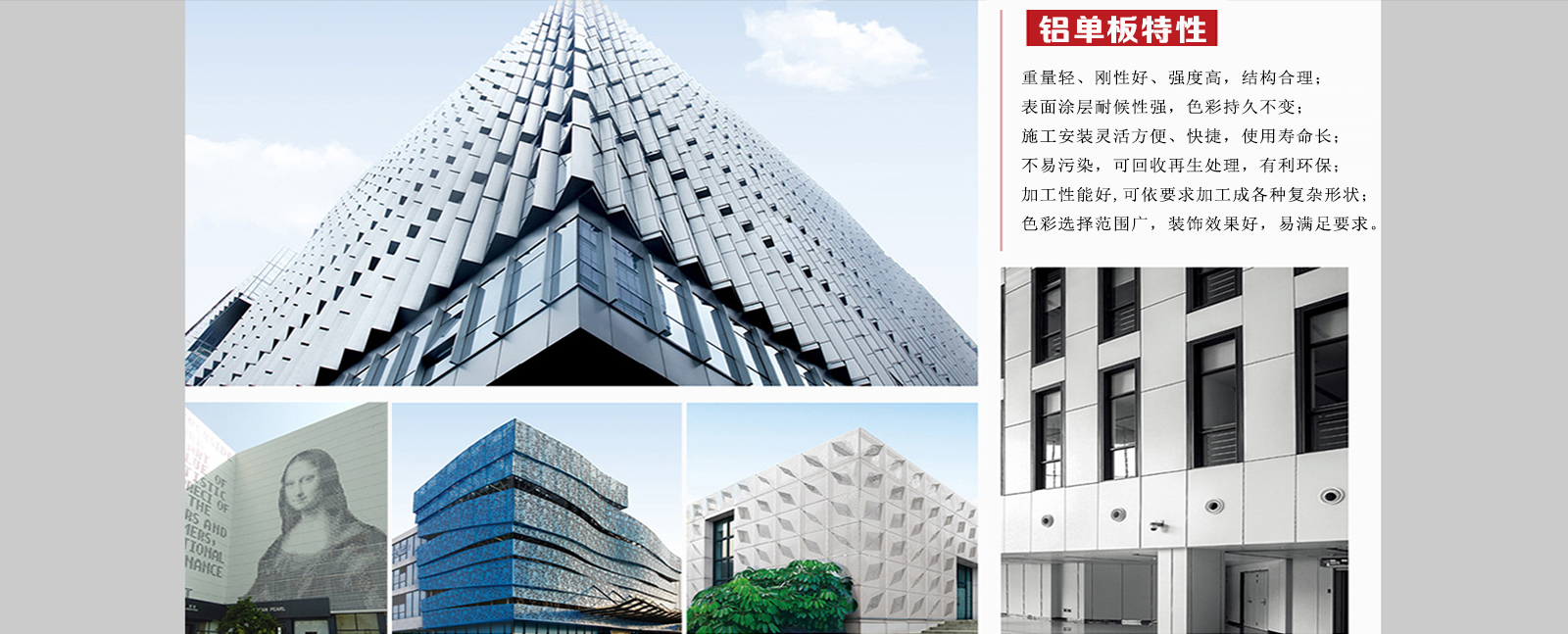 鋁單板幕墻產(chǎn)品具有強(qiáng)度高、重量輕、耐腐性強(qiáng)、結(jié)構(gòu)新穎、裝配方便、經(jīng)久耐用的特點(diǎn)。氟碳鋁單板能抗酸雨、鹽霧和各種空氣污染物,耐冷熱性能好,能抵御強(qiáng)烈紫外線的照射,能長(zhǎng)期保持不褪色、不粉化,使用壽命長(zhǎng)。但是再好的東西不去愛(ài)護(hù)它、保養(yǎng)它,更何…